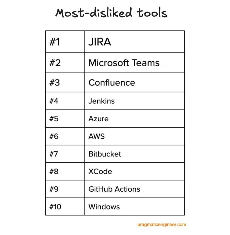 Each year, The Pragmatic Engineer survey is a goldmine of insights into what developers actually like, and more importantly, what they avoid at all costs. In 2025, one name stood out more than any other on the “most hated tools” list: JIRA.